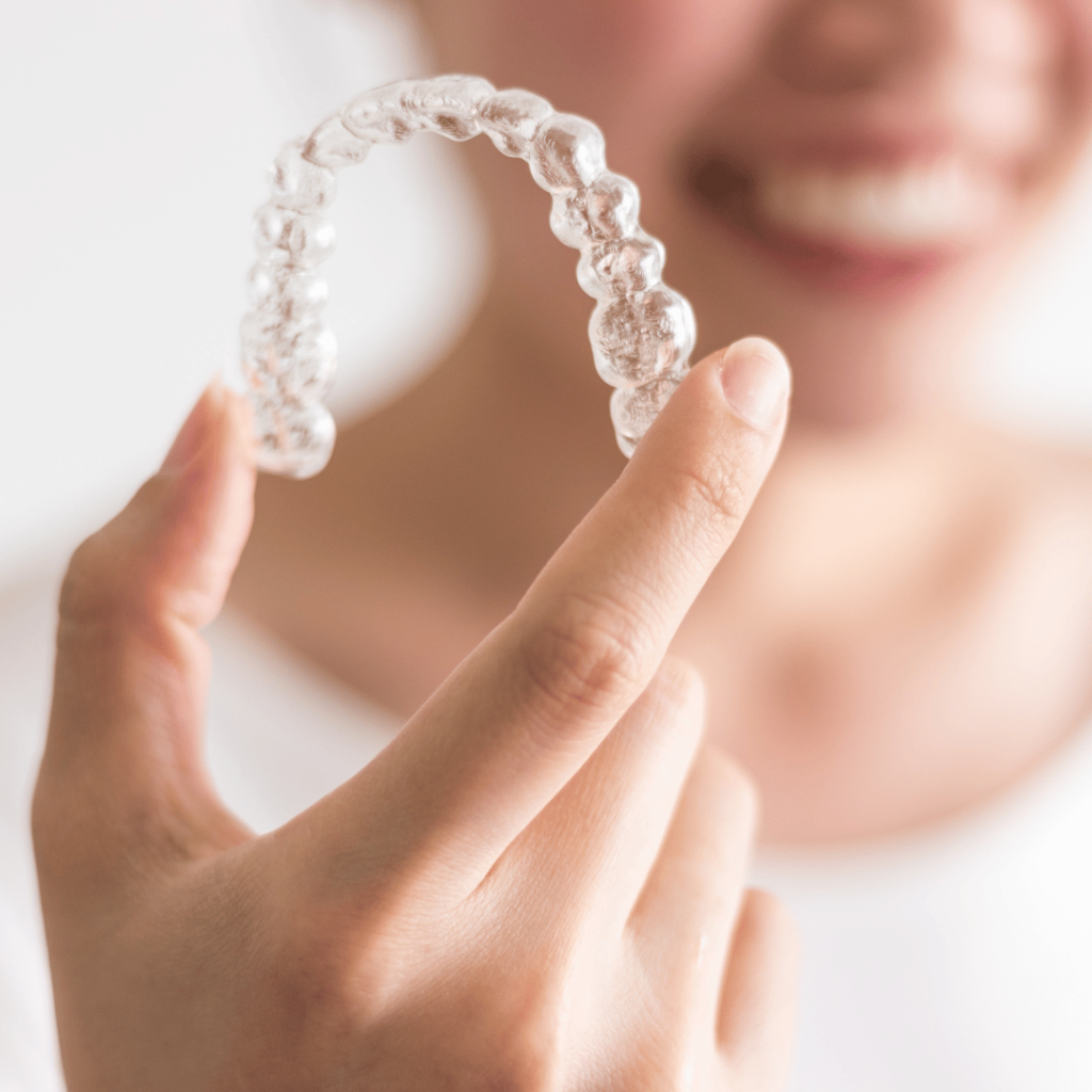 Invisalign, özel tasarlanmış şeffaf plaklarla işler. Bu şeffaf plaklar, dişleri belirli bir hizaya getirmek için kontrollü kuvvet uygular.